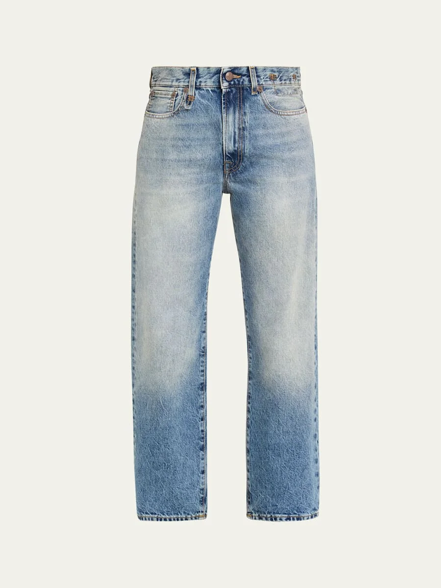 R13 classic boyfriend jeans in faded, rigid denim Midrise; sits high on the hip Fivepocket style Realxed fit Ankle length Button/zip fly; belt loops Cotton Made in Italy