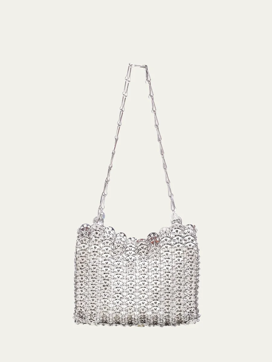 Paco Rabanne "1969" shoulder bag in allover disc-link brass Sliding shoulder strap Open top Unlined Approx. 5.9"H x 9.1"W x 1.2"D Imported Online Inquiries: BGS21_V5QG2| Store Inquiries: #4454906
