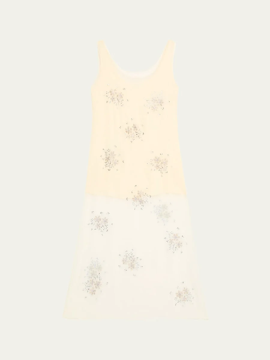 Rabanne layered tulle dress featuring floral crystal strass embellishment and a sheer hem Scoop neckline Sleeveless A-line silhouette Full length Slipover style Polyester/acetate/silk Imported Online Inquiries: BGS21_B9TPQ| Store Inquiries: #4965933