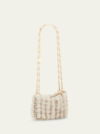 Rabanne shoulder bag in disclink leather, steel, and dyed/natural sheep shearling (Madagascar) Chain shoulder straps Open top with magnetic closure Approx. 6.1"H x 4.6"W x 1"D Item Weight (Lbs.): 0.6 Imported