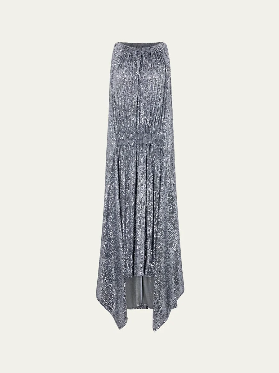 Rabanne sequinned dress featuring neck gathering and a smocked waist detail High neckline Sleeveless Shift silhouette Hem falls below the knee Back zip Polyester Imported Online Inquiries: BGS21_BA5R2| Store Inquiries: #5041196