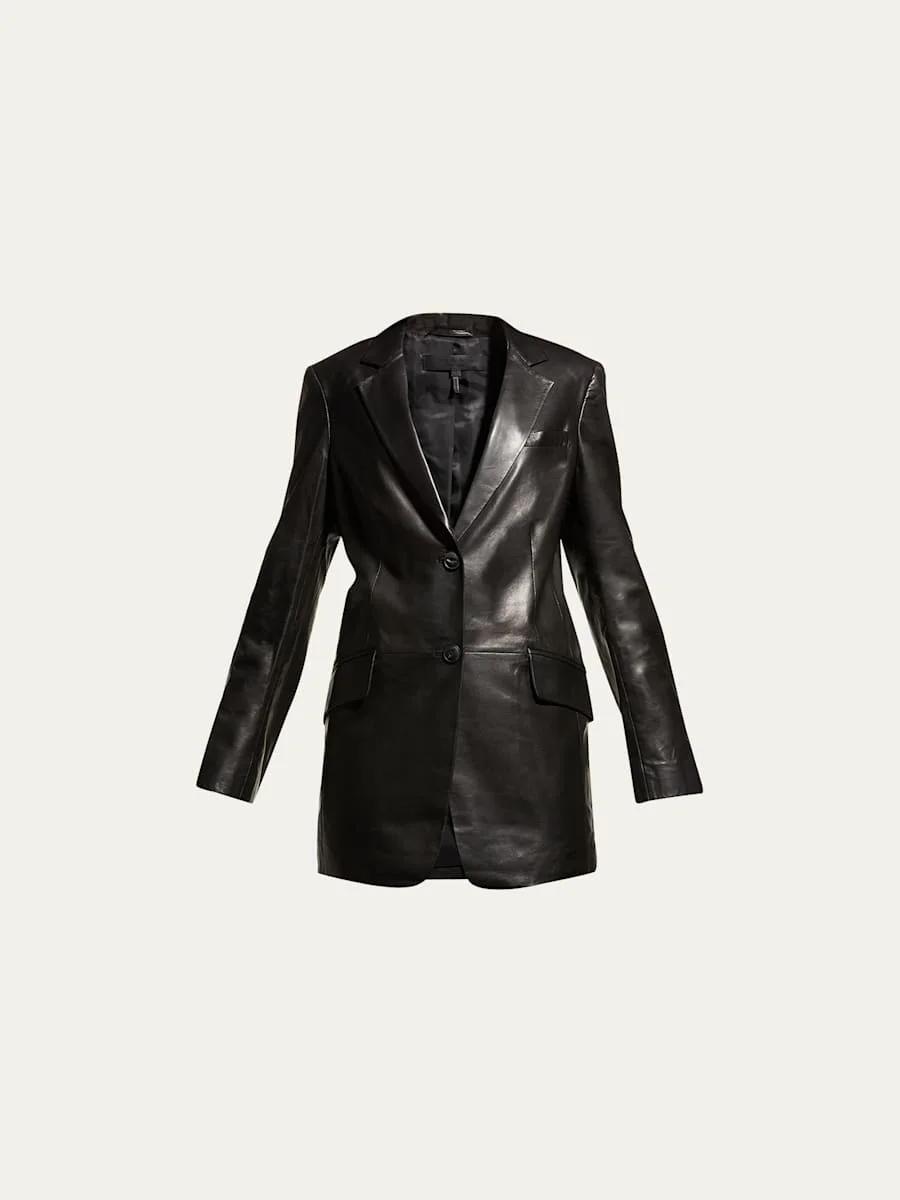 Rag & Bone "Charles" lambskin leather blazer Standard notch lapels Single-breasted front Long sleeves; button cuffs Front flap pockets Vented back Tailored fit Two button-front closure Lambskin leather Polyester lining Dry clean Imported Model is 5'10"/177cm. Online Inquiries: BGS21_T3RJ3| Store Inquiries: #4357312