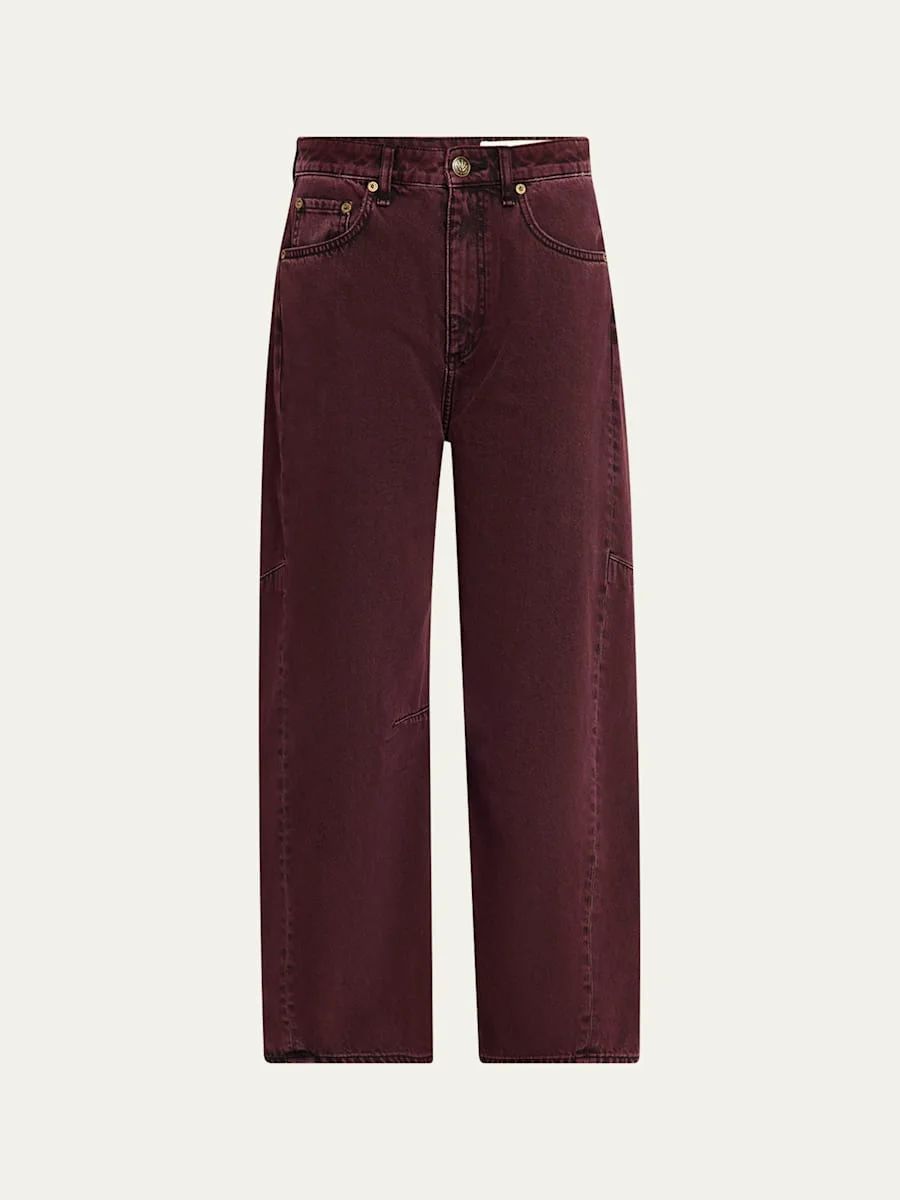 Rag amp; Bone "Charlie" exaggerated barrelleg jeans in colored denim Approx. 25.5" inseam High rise Fivepocket style Relaxed, loose fit Ankle length Button/zip fly; belt loops Cotton Machine wash Imported
