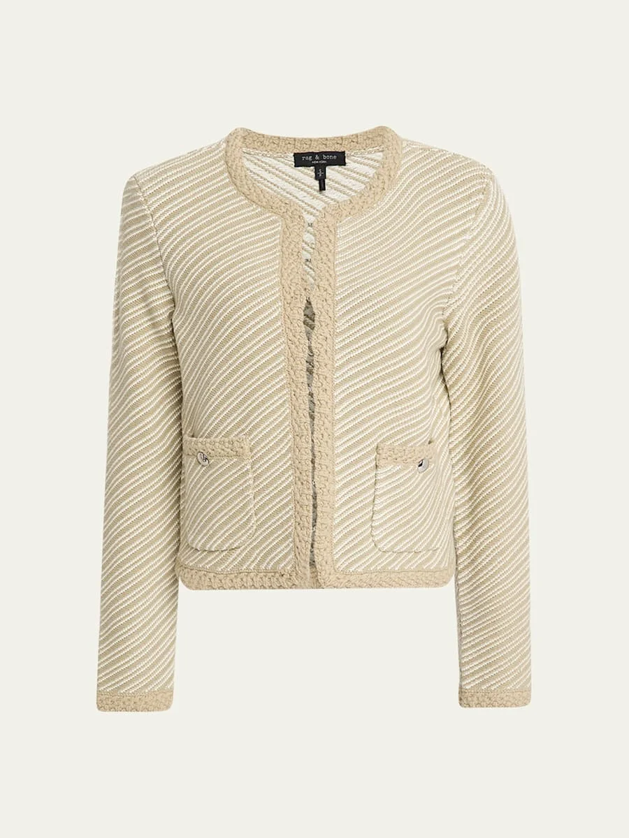 Rag amp; Bone "Claire" textured knit cardigan Round neckline Long sleeves Patch pockets Tailored fit Rounded hem Front hook closure Cotton/viscose/nylon/polyamide Trim: Metal Dry clean Imported