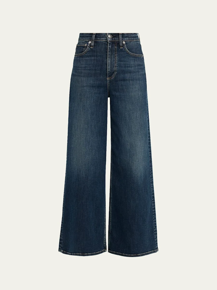 Rag amp; Bone "Flexi Sofie" jeans crafted in our Flexi denim that smooths, sculpts, and stretches for ultimate comfort. Approx. 12" rise; 30" inseam High rise Fivepocket style Wide legs Full length Button/zip fly; belt loops Viscose/cotton/Tencel® lyocell Machine wash Imported