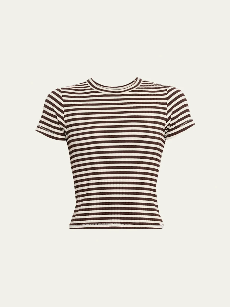 Rag amp; Bone "Luca" ribbed shirt Crew neckline Short sleeves Slim fit Hem sits at the hip Pullover style Modal/spandex Machine wash Imported