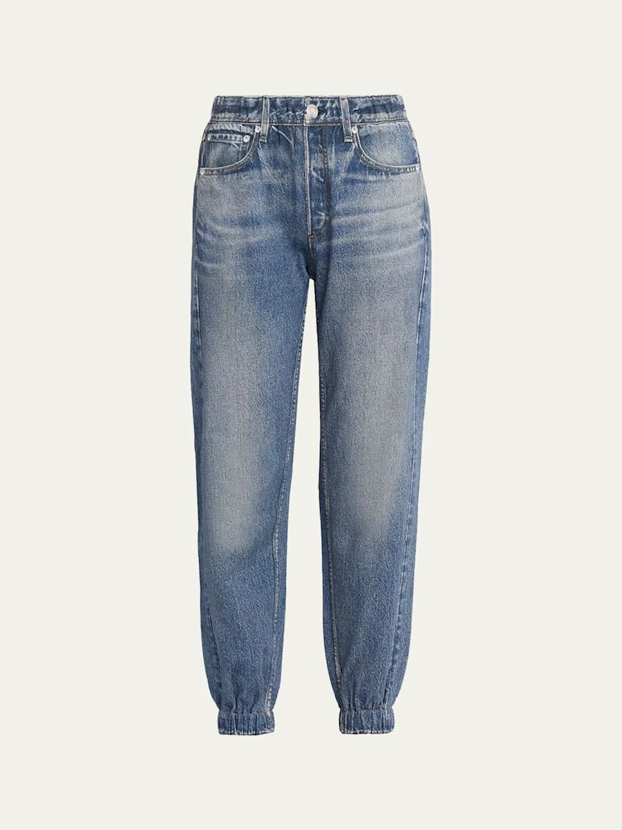 Rag amp; Bone "Miramar" digitallyprinted denim joggers crafted in a supersoft cottonterry Approx. 10.5" rise; 28.5" inseam Midrise; sits high on the hip Elasticized waistband Side seam pockets Relaxed, straight legs Ankle length Pullon style Cotton Machine wash cold Imported