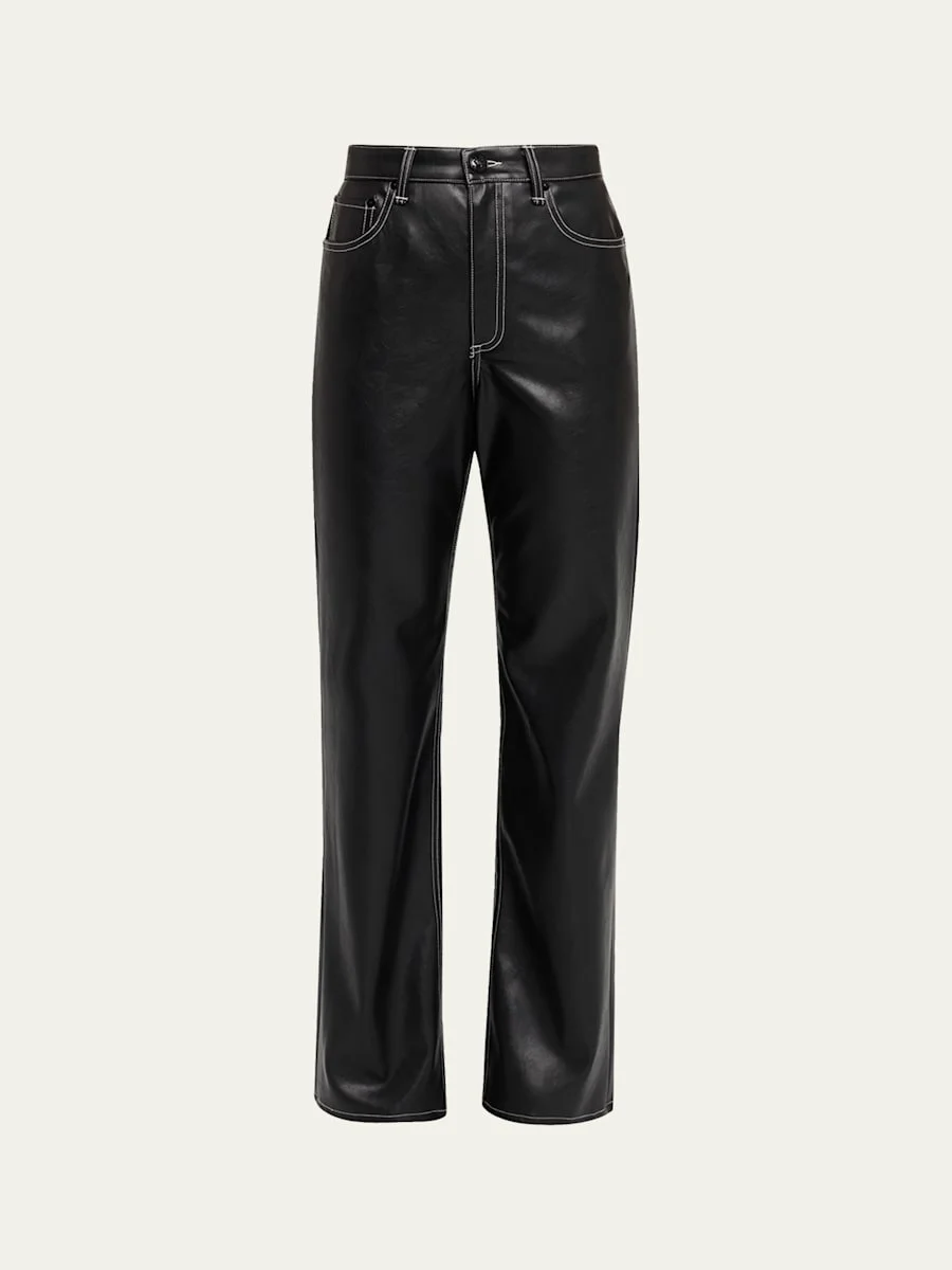 Rag amp; Bone "Shea" fauxleather pants finished with contrast topstitching Approx. 12" rise; 32" inseam High rise Fivepocket style Straight legs Full length Button/zip fly; belt loops Polyester/polyurethane/viscose Imported