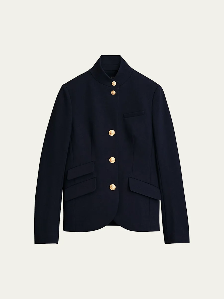 Rag & Bone "Slade" ponte blazer Stand collar Single-breasted front Long sleeves; button cuffs Front flap pockets Tailored fit Button-front closure Viscose Dry clean Imported Online Inquiries: BGS21_T4M7J| Store Inquiries: #4522273