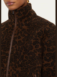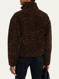 Rag amp; Bone "Sun" cozy sherpa jacket finished with vegan leather piping and a contrasting leopard motif Stand collar Dropped shoulders Long sleeves Side pockets Relaxed fit Zipfront Polyester Machine wash cold or dry clean Imported