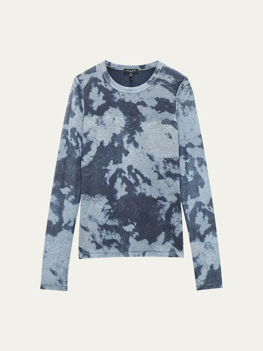 Rag amp; Bone "Yana" mesh top in a blurred print Crew neckline Long sleeves Slim fit Hem sits at the hip Pullover style Cotton/modal Machine wash cold Imported