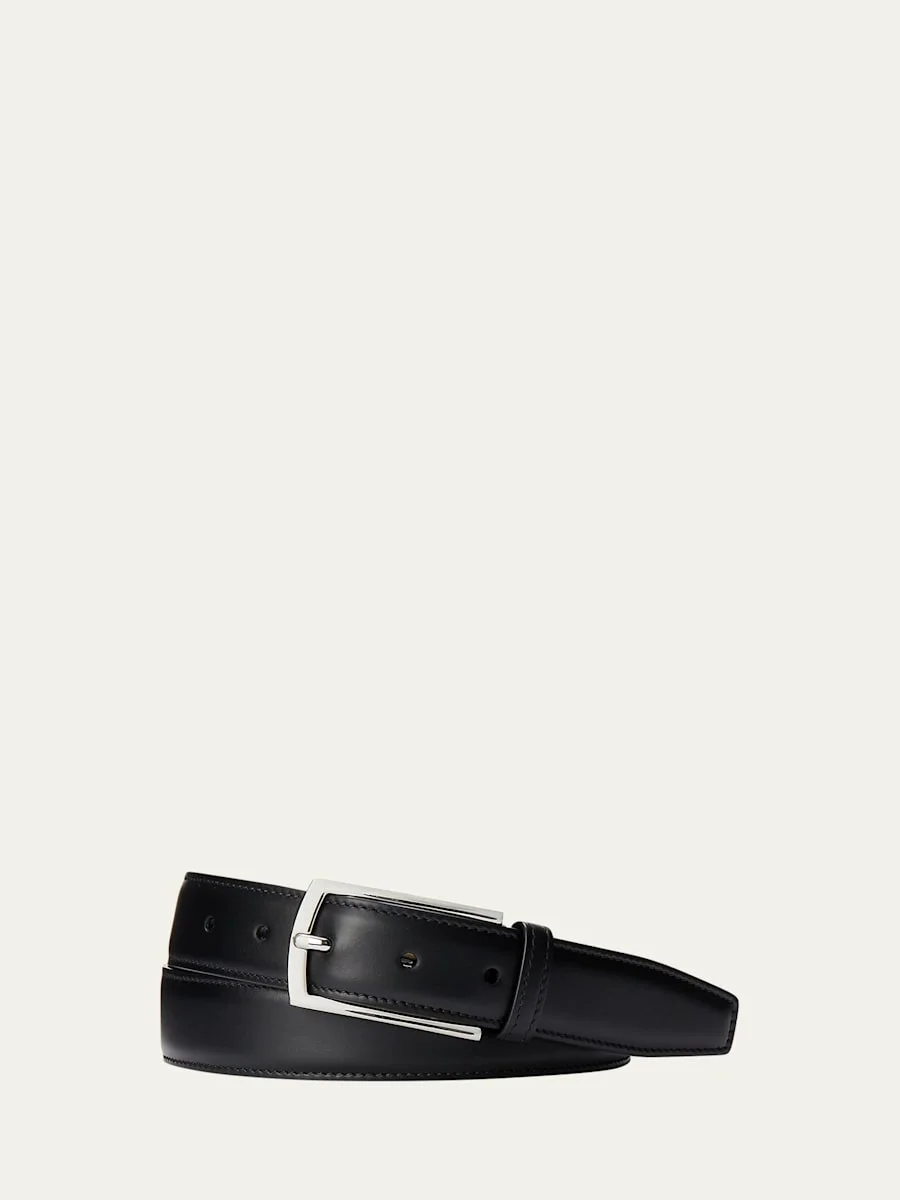Ralph Lauren Purple Label slim Italianmade belt crafted from smooth calfskin for a sleek finish Approx. 1"W Polished silvertone rectangular pin buckle Adjustable fit Leather loop Leather Made in Italy
