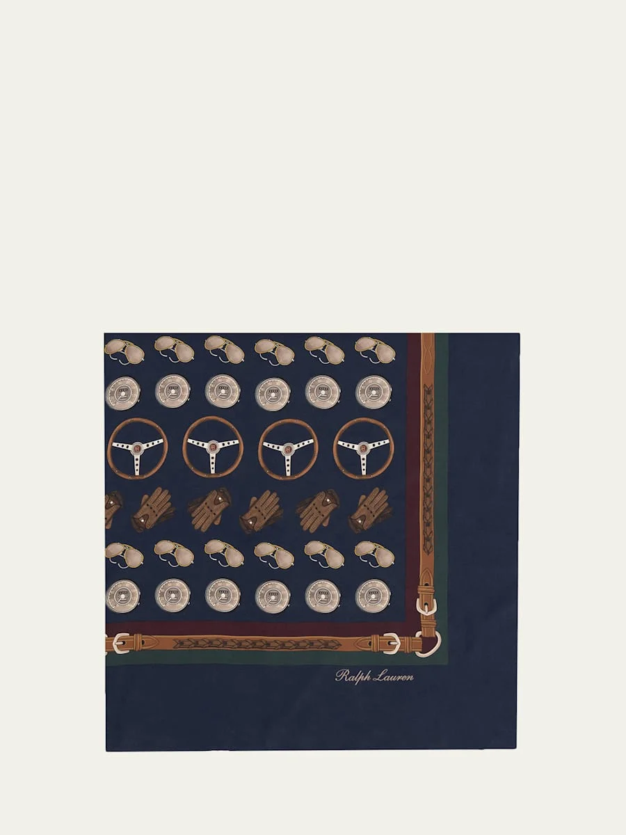 Crafted in Italy with silk twill, this Ralph Lauren Purple Label square scarf showcases a customdeveloped automotiveinspired print. Handrolled points Logo script on the corner Silk Dry clean Made in Italy