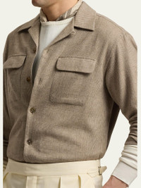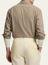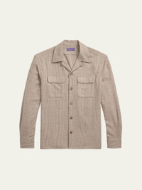 Ralph Lauren Purple Label sport shirt in a soft wool blend highlighted with a subtle Glen plaid print Two chest flap pockets Notch collar; sunglass loop Button placket Long sleeves Round barrel cuffs Back yoke with knife pleats Straight hem Wool/silk/cashmere Made in Italy Online Inquiries: BGS21_NDPRE| Store Inquiries: #5062663