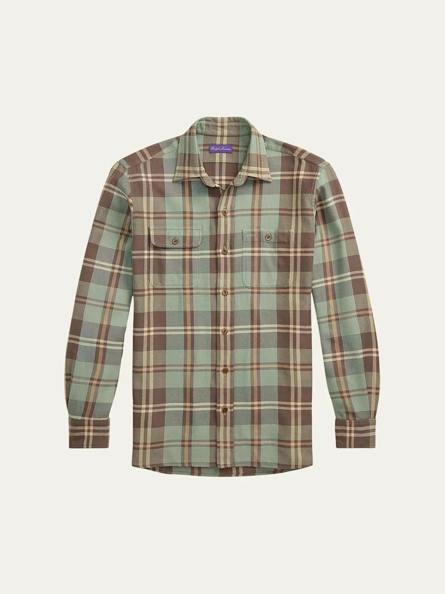 Men's Cotton Plaid Double-Pocket Sport Shirt