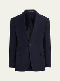 Ralph Lauren Purple Label "Kent" hand-tailored sport coat Approx. 30.25"L from shoulder to hem Roped shoulder Notch lapels; buttonhole on lapel Two-button silhouette Unfinished cuffs ready for custom-tailoring Left chest welt pocket Ticket pocket Two front waist flapped pockets Two interior chest pockets Double vent Lined at the back yoke and the sleeves Silk/linen Lining: Cupro/viscose/wool Dry clean Made in Italy Size 40r has a 30.25" front body length, a 29.75" back body length, an 18.5" shoulder, and a 17.75" sleeve inseam. Model is 6'1" (185 cm) and wears a size 40r. Online Inquiries: BGS21_NCSXS| Store Inquiries: #4945067