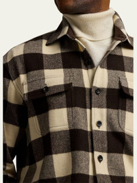 Ralph Lauren Purple Label overshirt in luxe merino wool for durable warmth, finished with a bold check pattern Buttoned chest flap pockets Point collar Button placket Round barrel cuffs Shirttail hem Classic fit Wool Made in Italy Online Inquiries: BGS21_NEKYU| Store Inquiries: #5358549