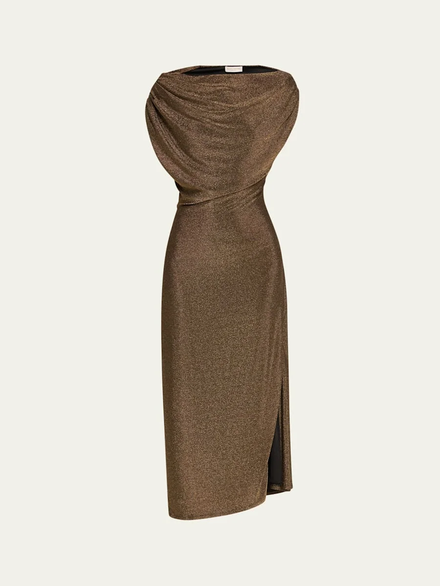 Rocker Chet Metallic Boat-Neck Midi Dress