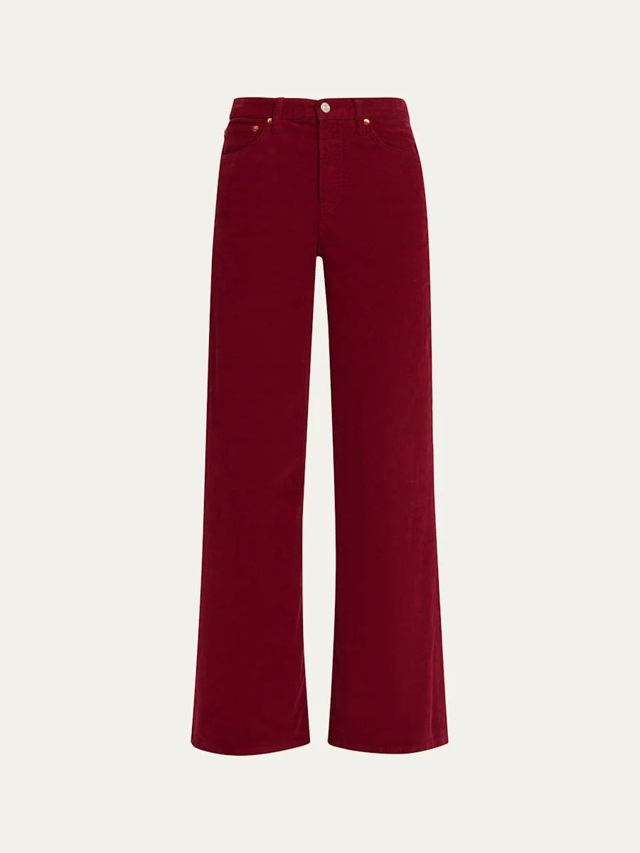 RE/DONE 70sinspired flared pants finished with studded trim in comfortstretch corduroy Approx. 33" inseam High rise Fivepocket style Wide fit Full length Button/zip fly; belt loops Cotton/elastane Machine wash cold Imported