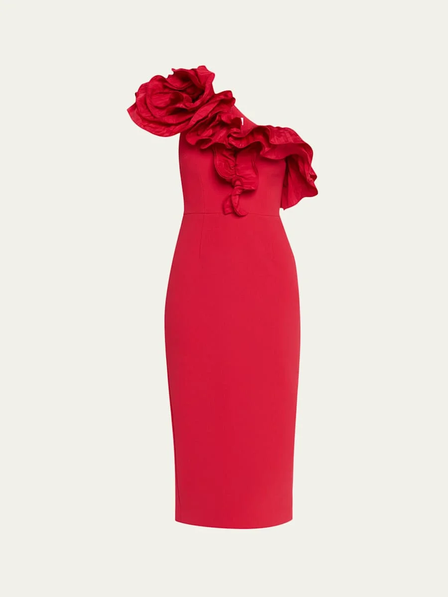 Zarya One-Shoulder Ruffle Bodycon Midi Dress
