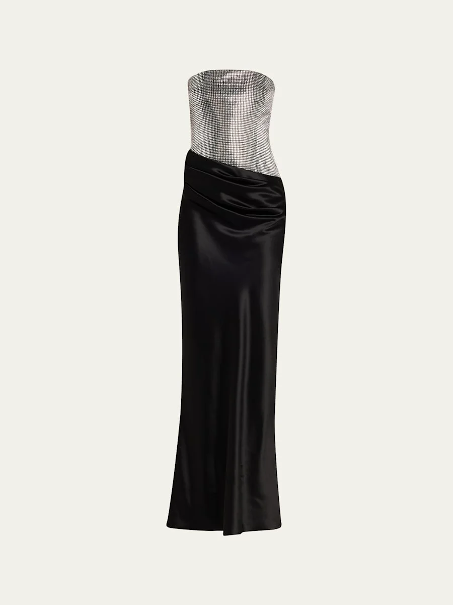 Retrofete "Alexandra" dress featuring a sequin-embellished bodice finished with draping Strapless neckline Sleeveless Column silhouette Full length Invisible side zip Acetate/polyester Dry clean Imported Online Inquiries: BGS21_T8Y79| Store Inquiries: #4924591