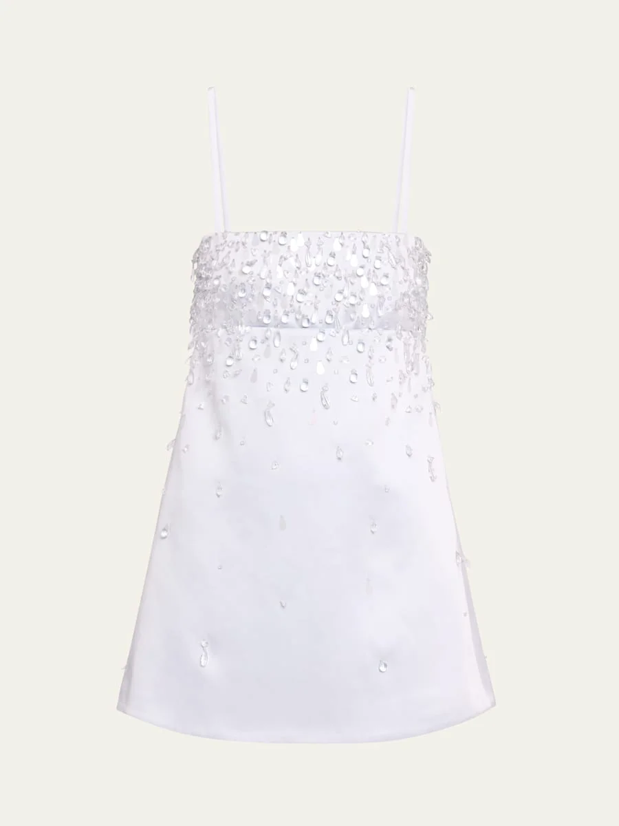 Retrofete "Cornelia" crystal-embellished mini dress Square neckline Spaghetti straps Shift silhouette Hem falls above the knee Invisible back zip Polyester/rayon/cellulose acetate Dry clean Imported Online Inquiries: BGS21_T6AP4| Store Inquiries: #4947462