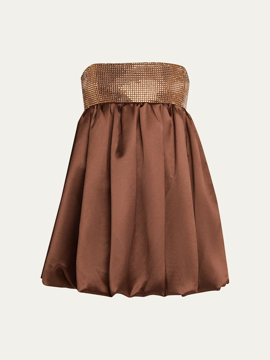 Retrofete "Delfina" satin bubble dress elevated with an embellished bodice Strapless neckline Sleeveless Empire waistline Hem falls above the knee Center back zip Acetate/polyester Dry clean Imported Online Inquiries: BGS21_T6XE0| Store Inquiries: #5060705