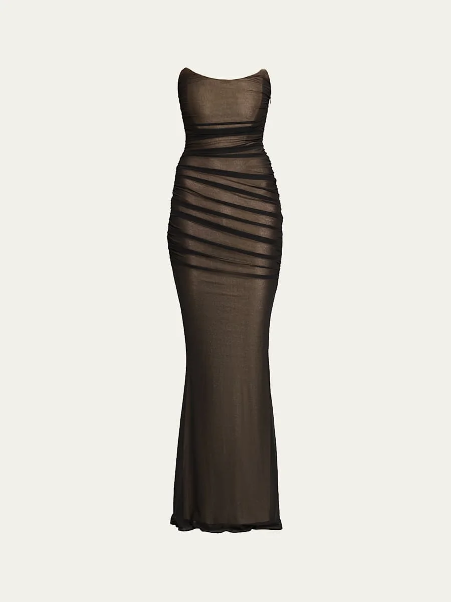 Retrofete "Ford" gown defined by subtle ruching Strapless neckline Sleeveless Floor-length hem Body-conscious silhouette Side seam zip closure Polyester Dry clean Imported Online Inquiries: BGS21_T5ZBU| Store Inquiries: #4865861