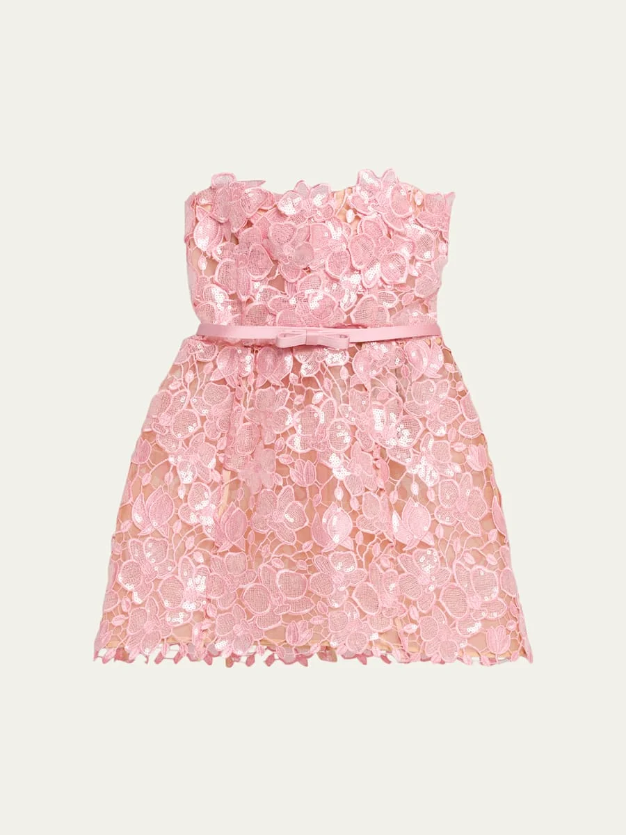 Designed in shimmering sequinembellished lace, the "Novalie" mini dress by Retrofete is accented with a delicate belt and laceup corset back, creating an alluring silhouette that exudes femininity. Strapless neckline Sleeveless Aline silhouette Hem falls above the knee Polyester Lining: Polyester Dry clean Imported SIZE amp; FITModel measurements: 5'10" tall Model is wearing a US size 4/Small