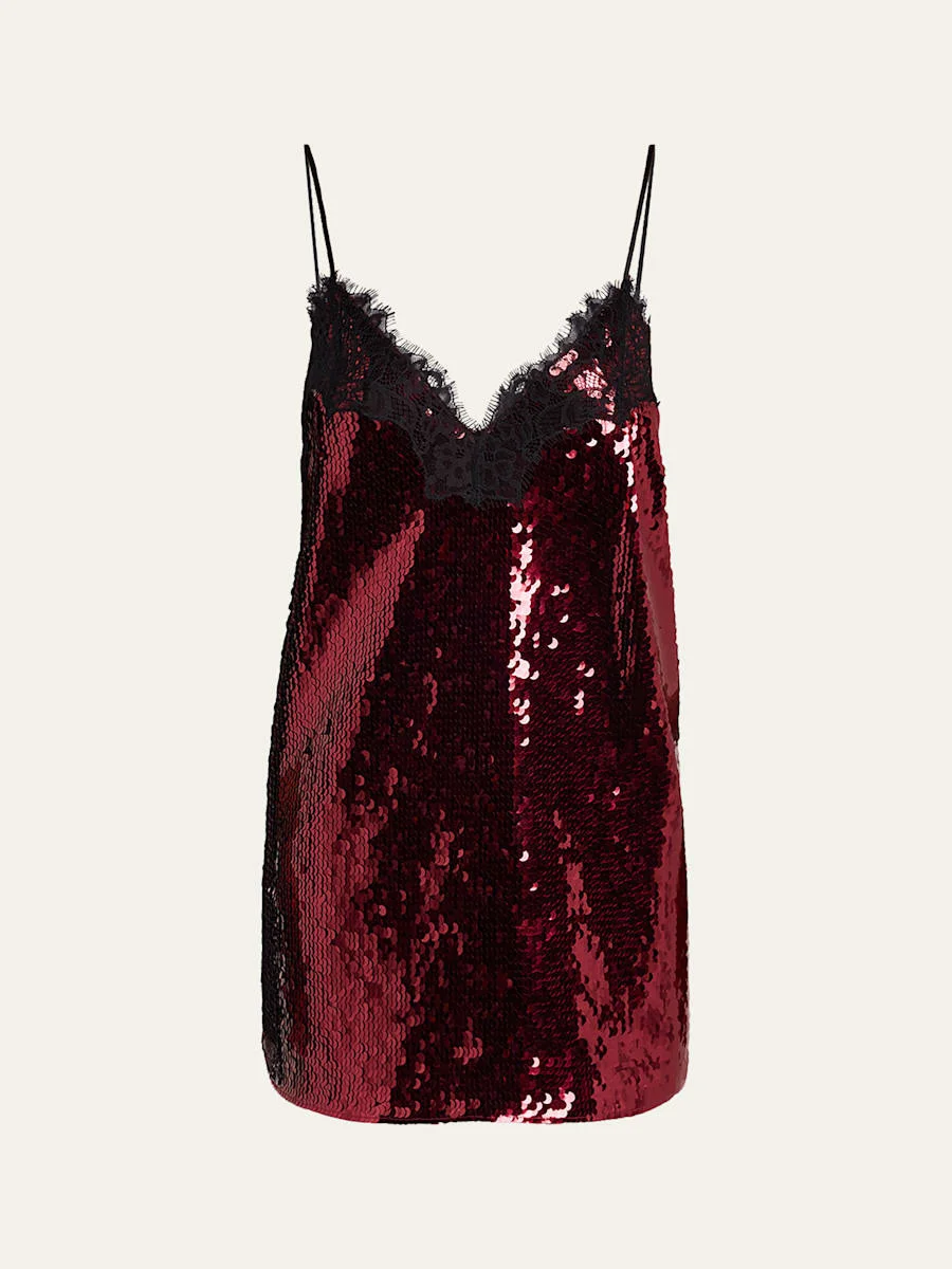 Retrofete "Olive" sequinembellished mini dress featuring lace detailing V neckline Adjustable spaghetti straps Shift silhouette Hem falls above the knee Slipover style Polyester Imported