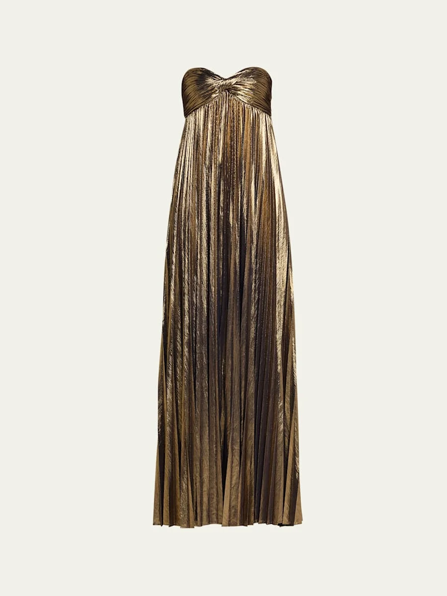 Zoa Strapless Lamé Twisted-Bodice Gown