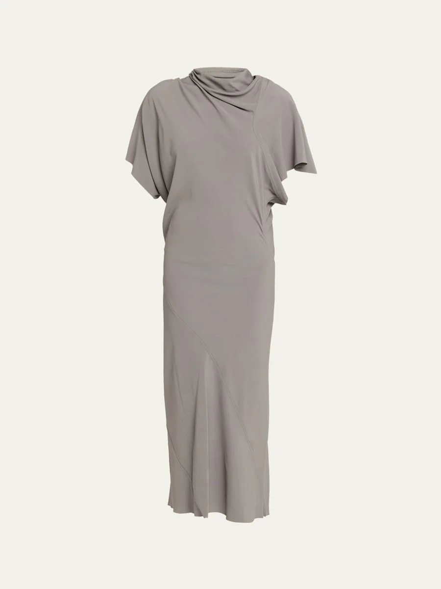 Cowl-Neck Short-Sleeve Silk Midi Dress