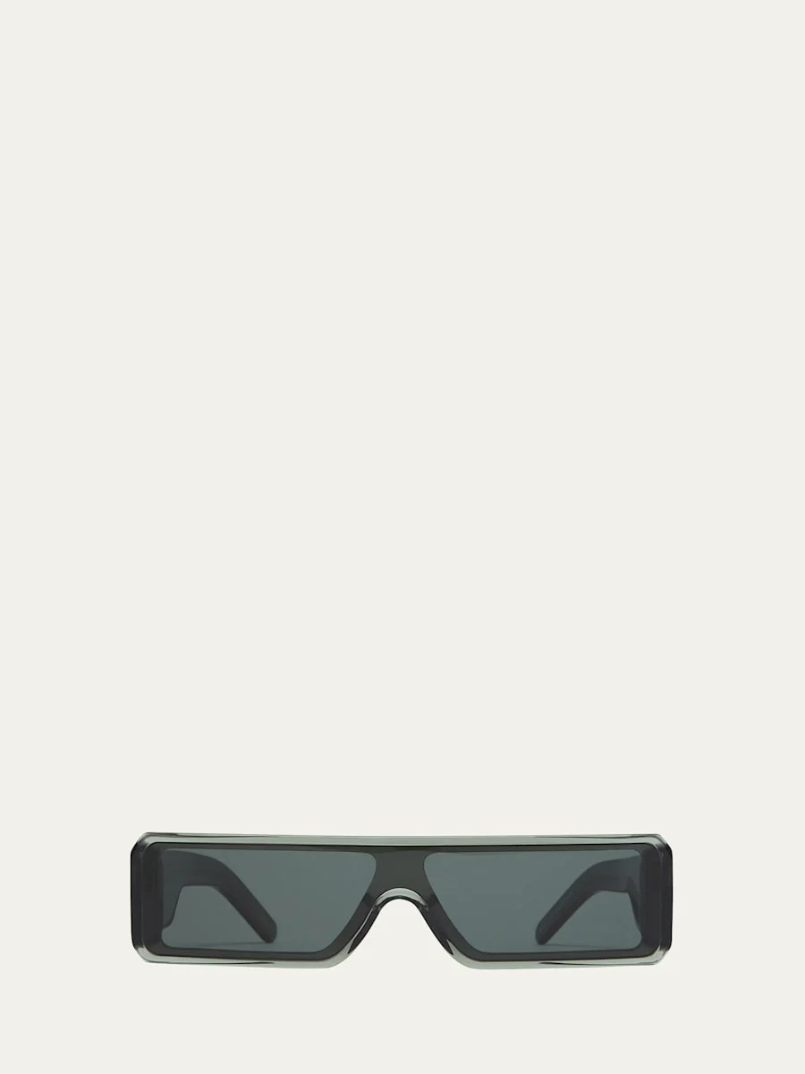 The Rick Owens "Gethshades" slim sunglasses offer a sleek, rectangular acetate frame Singlecut solidcolor lenses Flat top Saddle nose bridge Trio silver rivets on the temples Signature thick, angled arms Acetate/nylon/polyamide 100% UVA/UVB protection Made in Italy