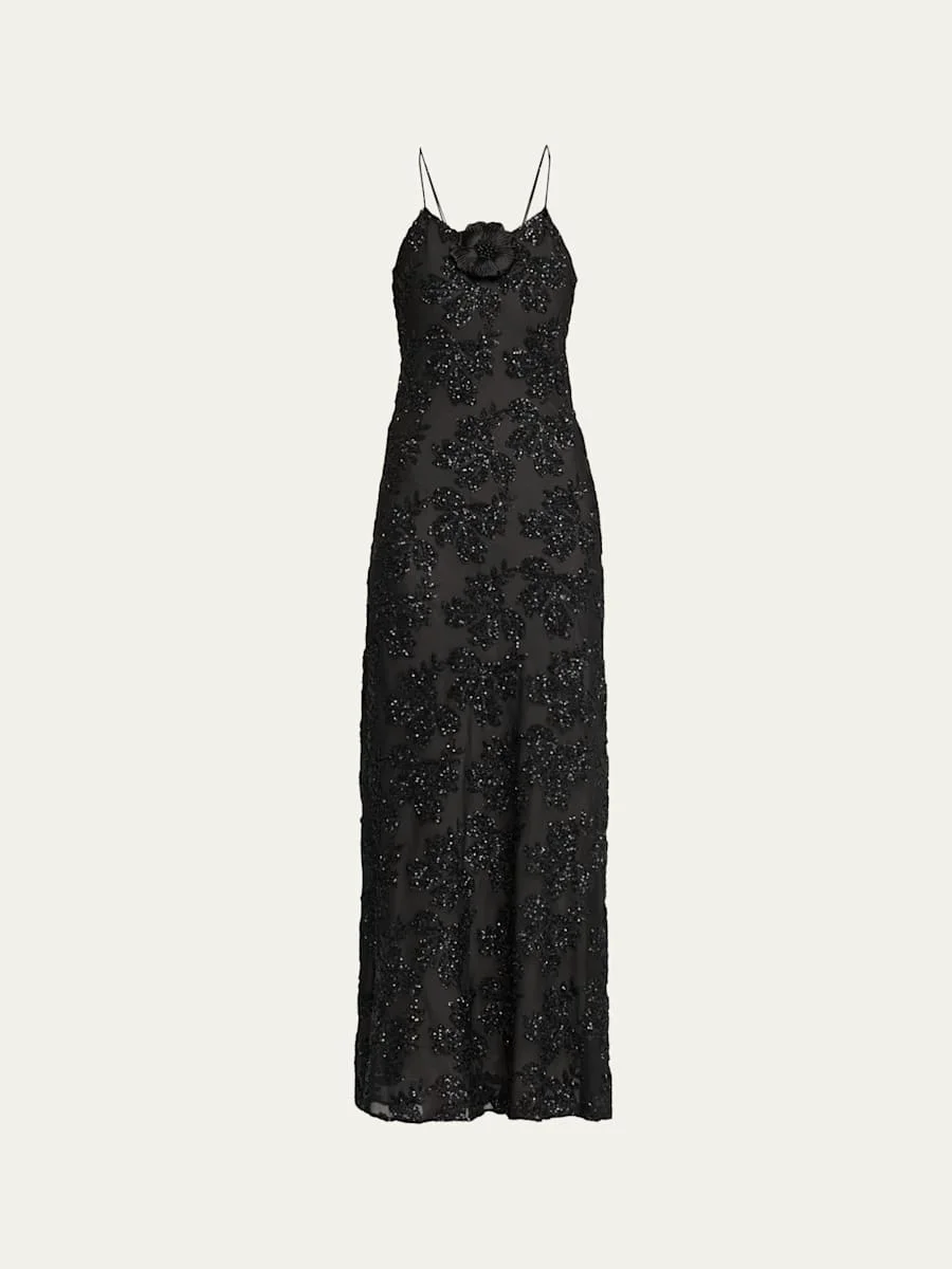 Floral Sequin Embroidered Sleeveless Maxi Dress