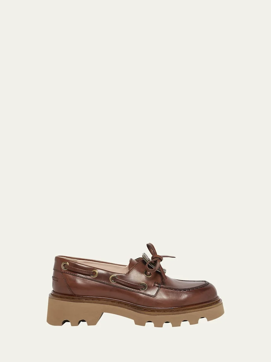 Viv Ranger Leather Buckle Lug-Sole Boat Loafers