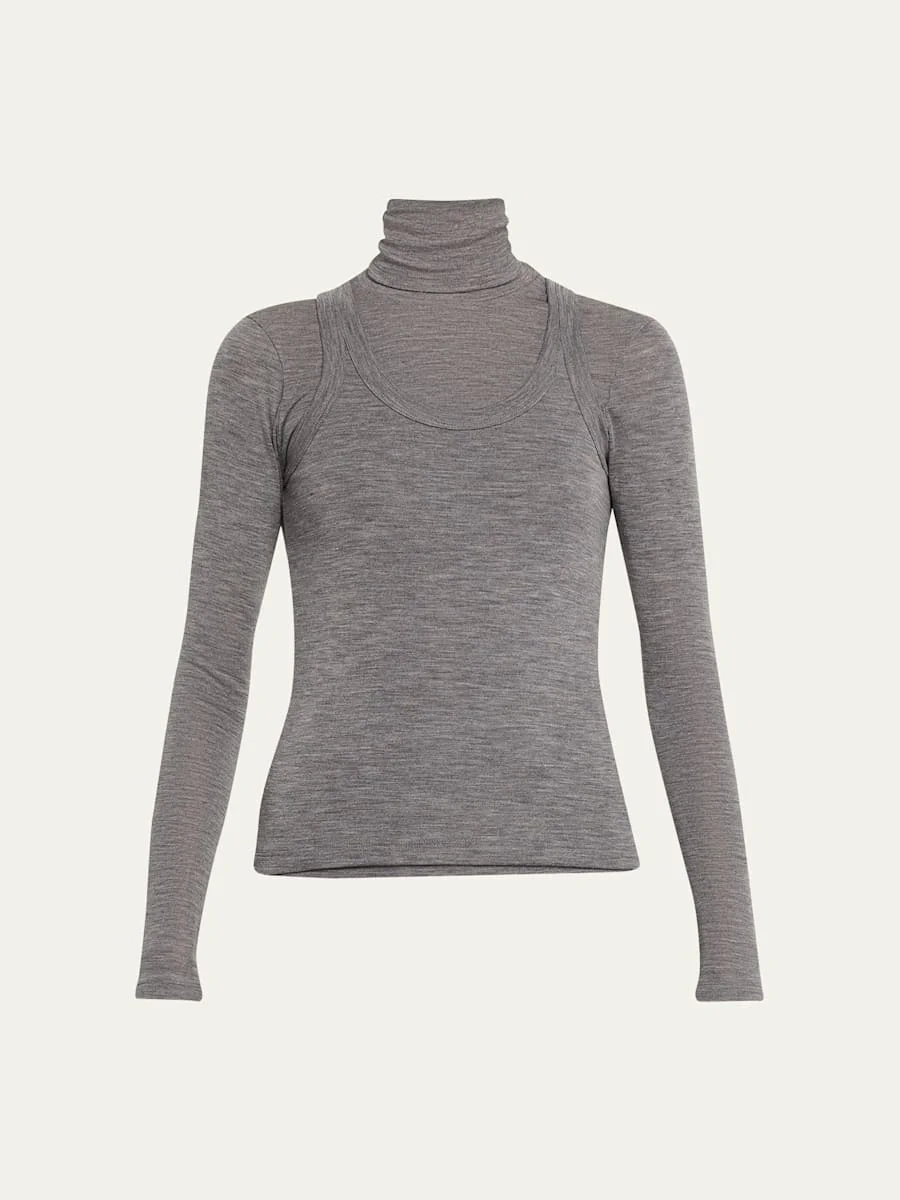 Convertible layered merino wool-jersey turtleneck top Charcoal