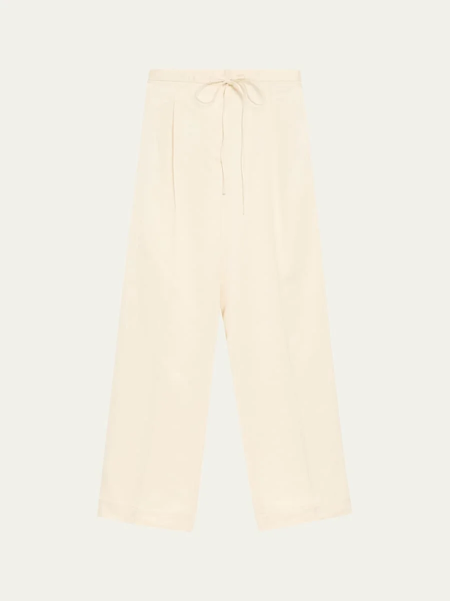 Rohe satin trousers finished with a pleated front High rise Drawstring waistband Back welt pockets Relaxed, wide legs Full length Pull-on style Acetate/viscose Unlined Hand wash or dry clean Made in Portugal Online Inquiries: BGS21_T6WJF| Store Inquiries: #5052462