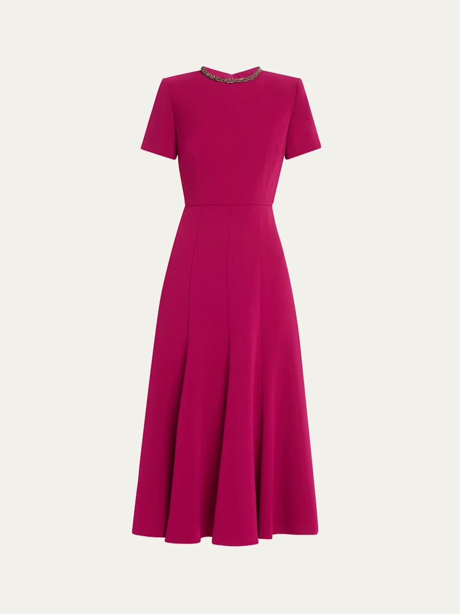 Roland Mouret light cady dress features diamante embellishment on the neckline Round neckline Short sleeves Hem falls below the knee Fit-and-flare silhouette Zip closure Polyester Trim: Metal, crystal Dry clean Imported Proposition 65 warning for California residents Online Inquiries: BGS21_B9YC6| Store Inquiries: #5000125