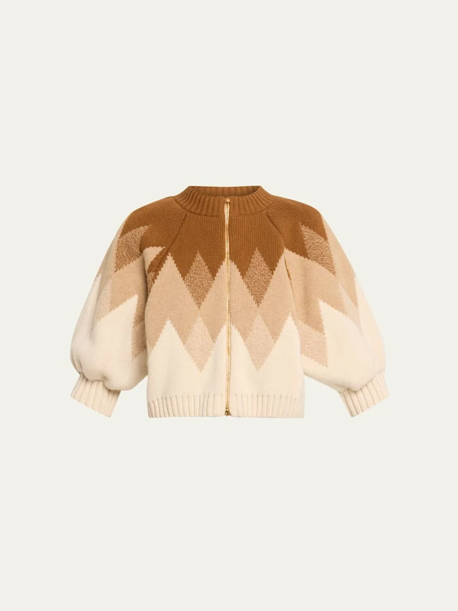 The Innes Fair Isle Puff-Sleeve Zip Cardigan
