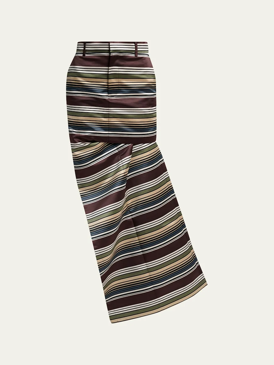 Crafted from striped lustrous satin, this skirt from SACAI features a gathering detail, creating an asymmetric silhouette and a side slit hem Mid waist Angled side slip pockets Back buttonwelt pockets Fitandflare silhouette Full length Side slit hem Hook/zip fly; belt loops Polyester/cupro Dry clean Made in Japan
