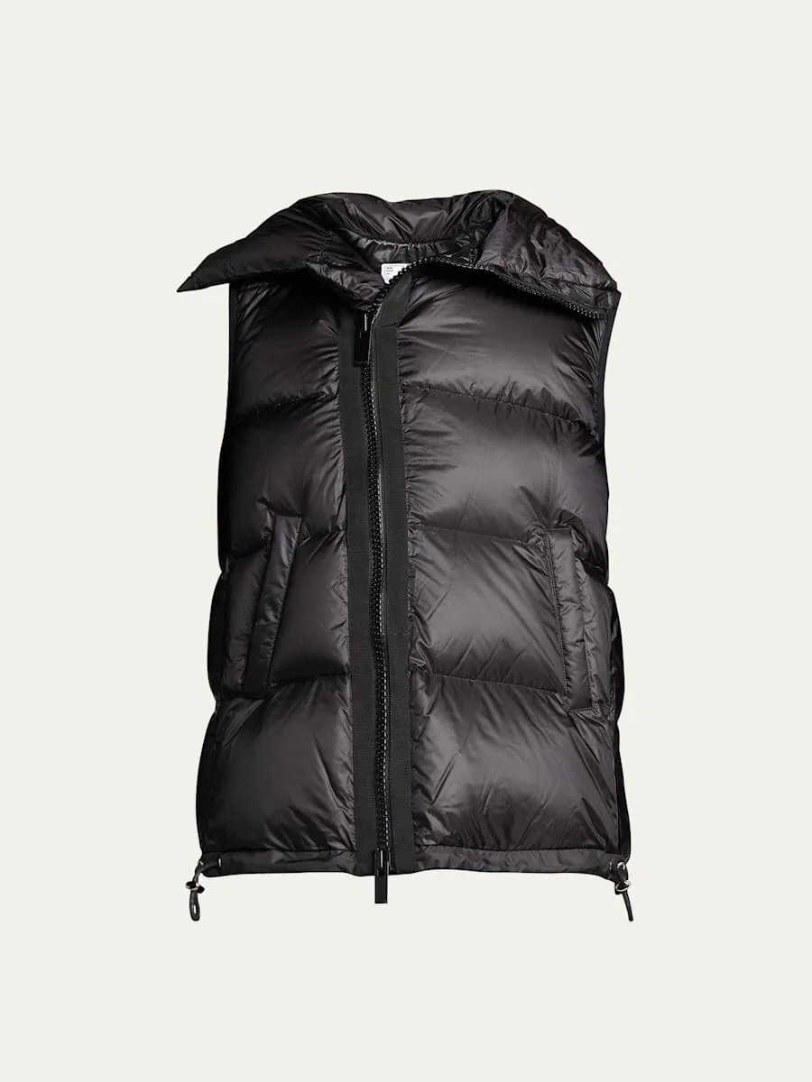 SACAI puffer vest High neckline; asymmetric two-way zip front Sleeveless Side pockets Relaxed fit Drawcord hem Nylon/polyester Polyester/down/feather fill Imported Model is 5'10"/177cm. Online Inquiries: BGS21_B8P6M| Store Inquiries: #4121349