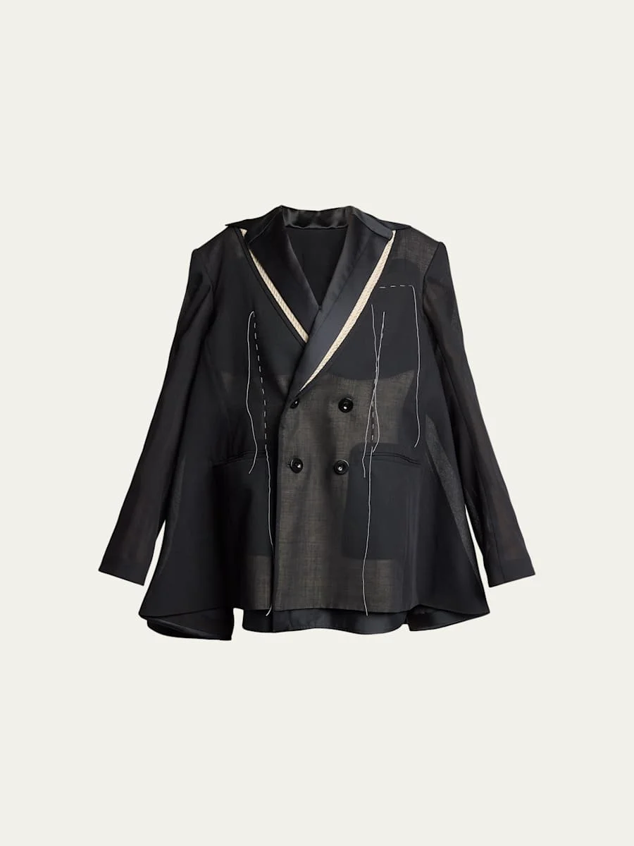 Deconstructed Wool Organza Double-Breasted Jacket