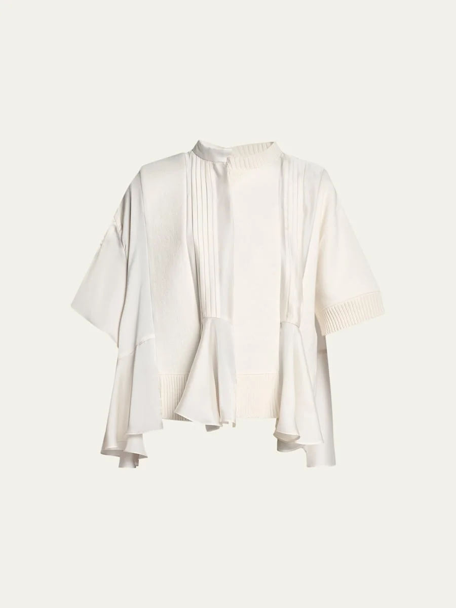 Mixed-Media Cashmere Short-Sleeve Peplum Sweater