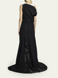 Mixed-Media Draped High-Low Gown
