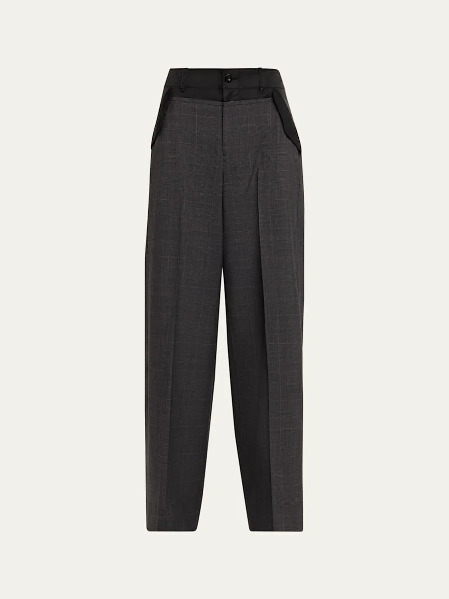 Nylon-Waistband Glen Check Wide-Leg Trousers
