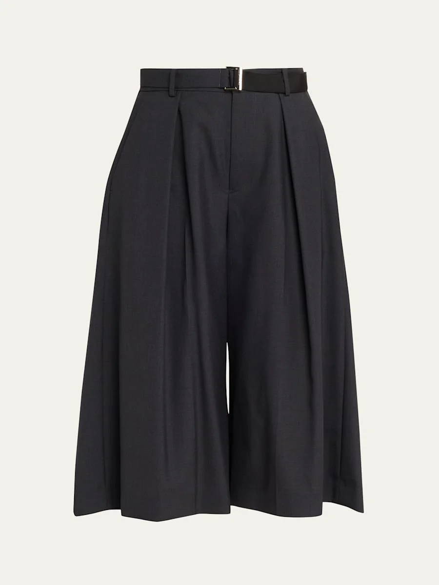 Crafted from woolblend, these culotte suiting pants from SACAI feature dramatic pleats adorned with satin side stripes and a grosgrain belt High rise Side slip pockets Back welt pockets Wide legs Cropped length Hook/zip fly; belt loops Polyester/wool/cupro Lining: Cupro/polyester Dry clean Made in Japan SIZE amp; FITModel measurements: 5'10" tall Model is wearing a US size 4/Small