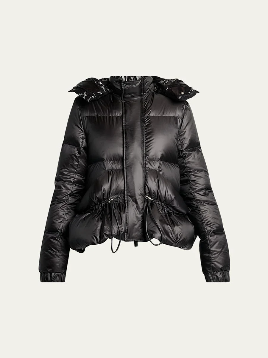 Engineered for both function and statement, this SACAI puffer jacket features an adjustable drawstring waist, amplifying its volume and a detachable hood with high-shine glossy lining Stand collar; concealed two-way zip front Long sleeves; elasticized cuffs Hip slip pockets Loose fit Hem falls below the hip Nylon/polyamide Fill: Feather, Down/Polyester Dry clean Imported Online Inquiries: BGS21_BAABH| Store Inquiries: #5067190