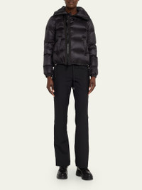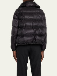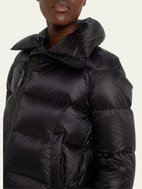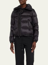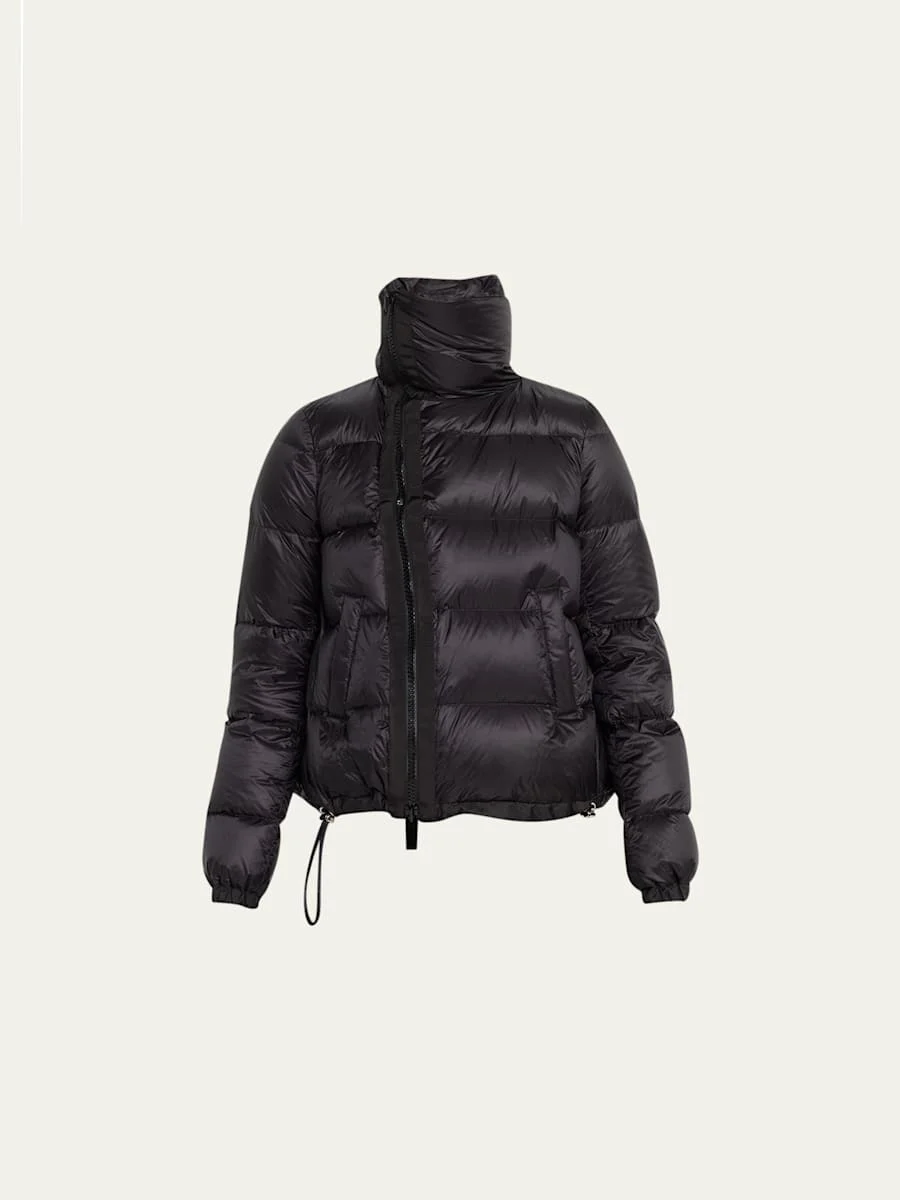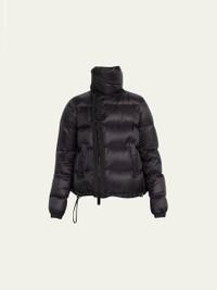 SACAI puffer jacket in quilted nylon. Stand collar; snap placket front. Long sleeves. Chest flap pockets. Drawstring waist and hem. A-line silhouette. Nylon; polyester combo. Fill, down/feather. Imported. Model is 5'10"/177cm. Online Inquiries: BGS21_B8PP2| Store Inquiries: #3051256