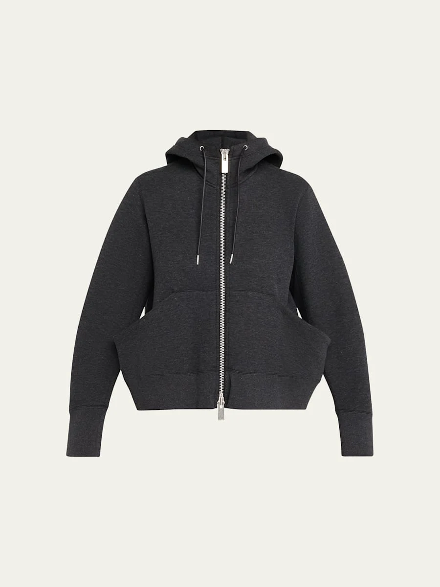 SACAI sponge sweatshirt jacket with exaggerated hip pockets creating a sculptural effect Drawstring hooded neckline; two-way zip front Long sleeves Side sip pockets Loose fit Banded cuffs and hem Cotton/polyester Dry clean Made in Japan Online Inquiries: BGS21_BAAB8| Store Inquiries: #5067186