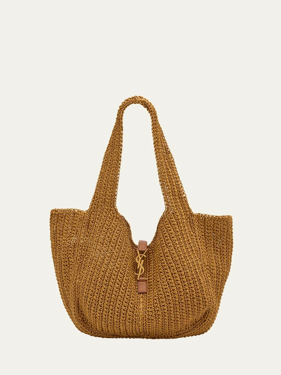 Saint Laurent "Bea" tote bag in cord, linen, and leather Shoulder straps Open top with signature YSL hook closure Interior, leashed zip pouch bag Golden hardware Approx. 11"H x 19.7"W x 7.1"D Made in Italy Proposition 65 warning for California residents Online Inquiries: BGS21_V6F83| Store Inquiries: #4957235